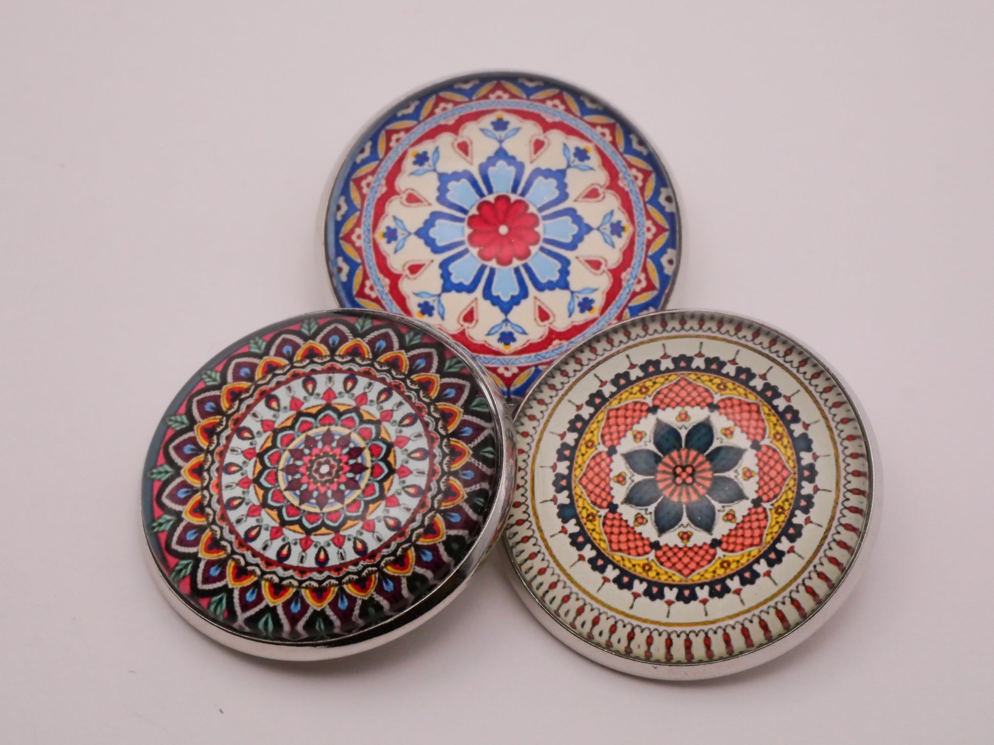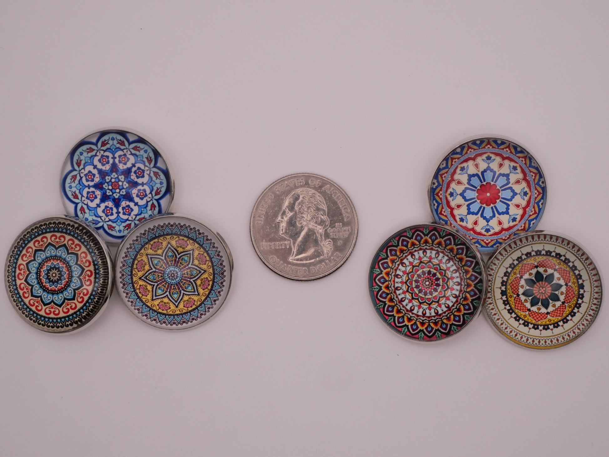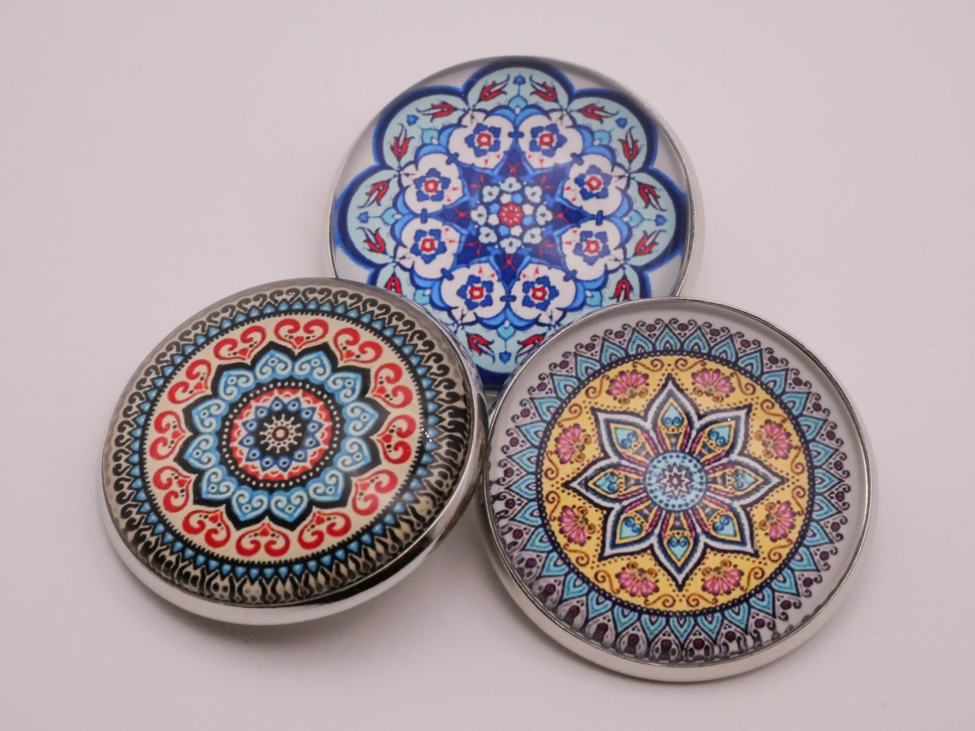 Set of three mandala design glass dome buttons, choose your favorite set.