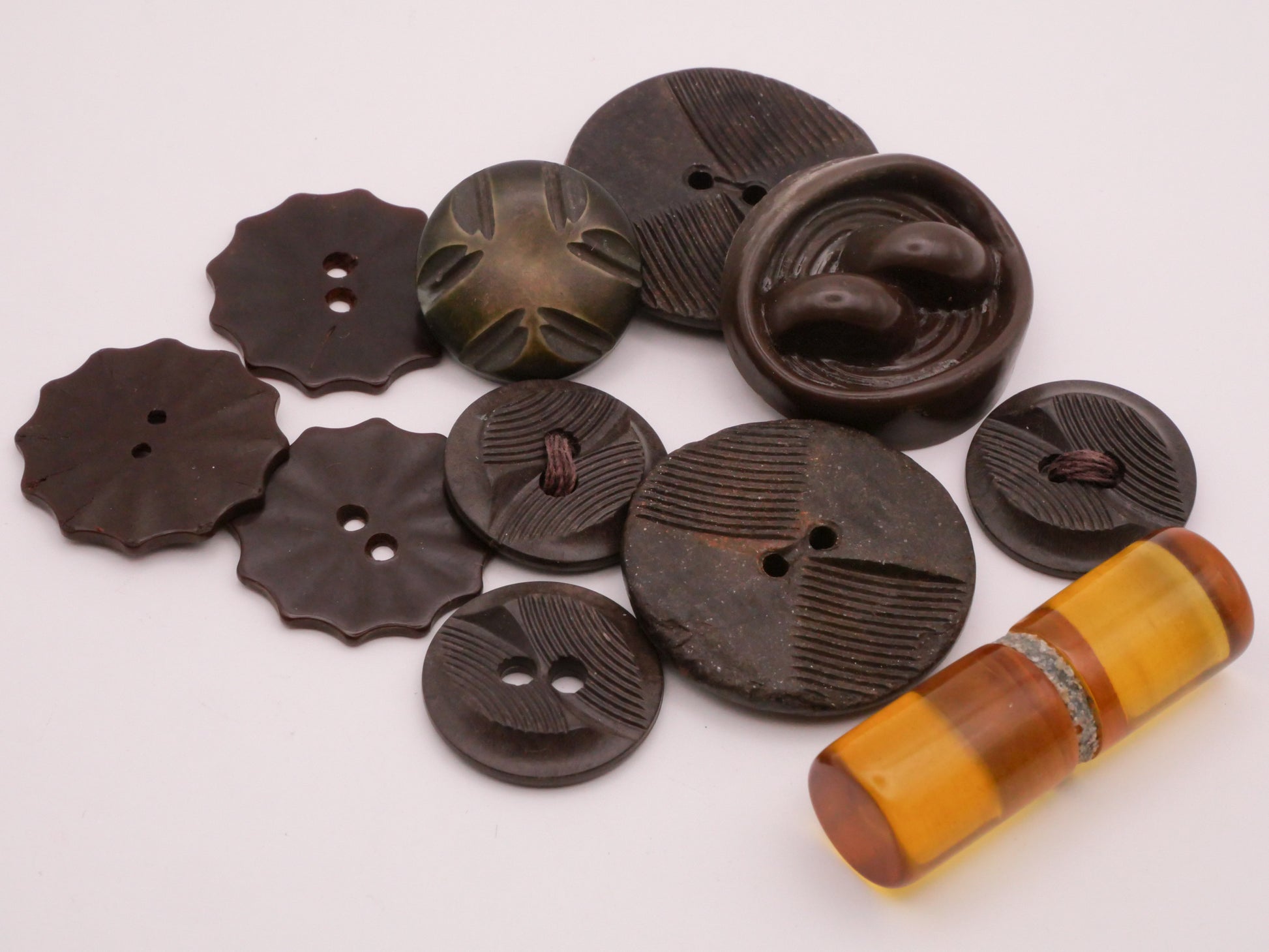 Vintage plastic lot of buttons, including an apple juice Bakelite.