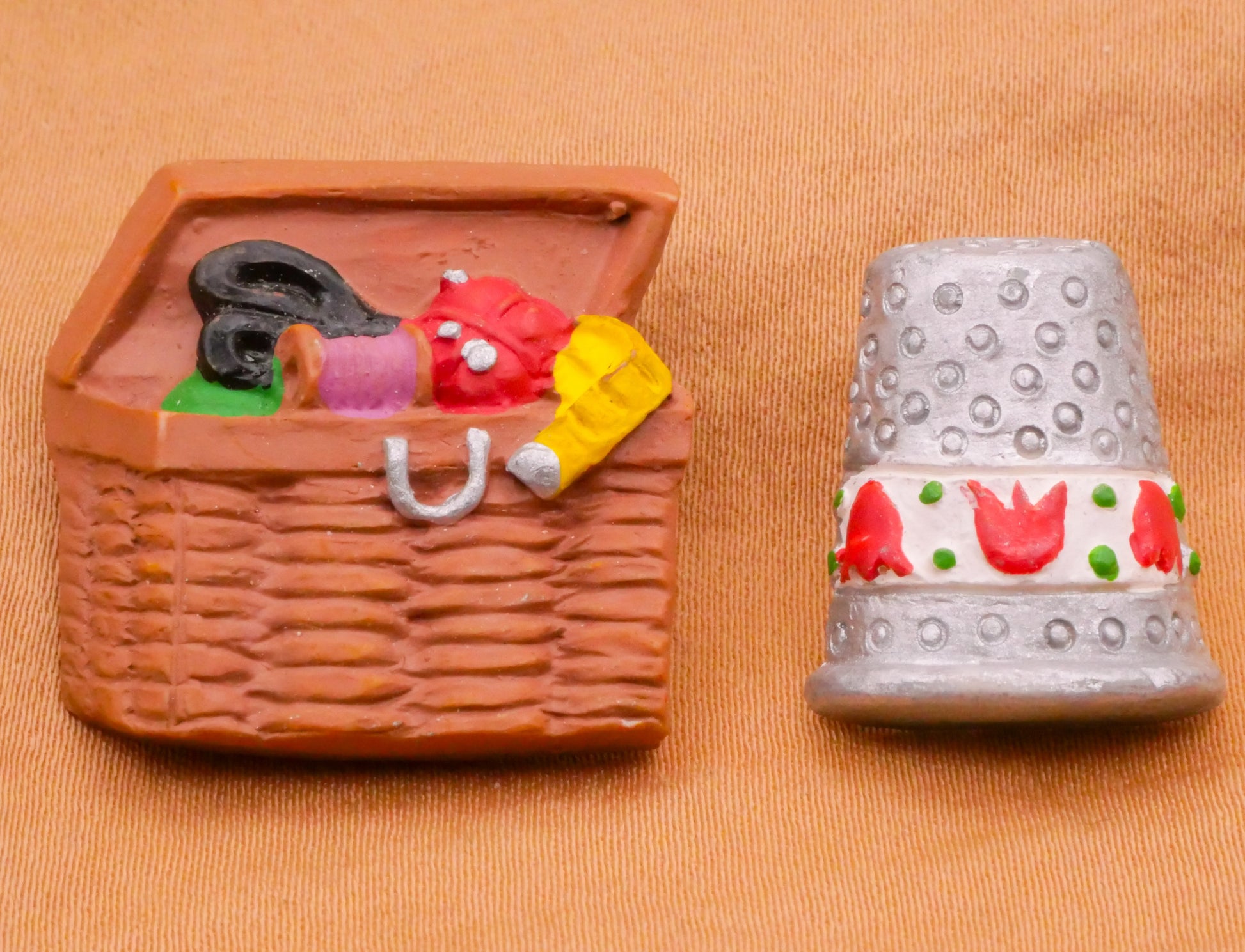 Sewing Themed Basket or Thimble Hand-Painted Plastic Button Various 16-25mm