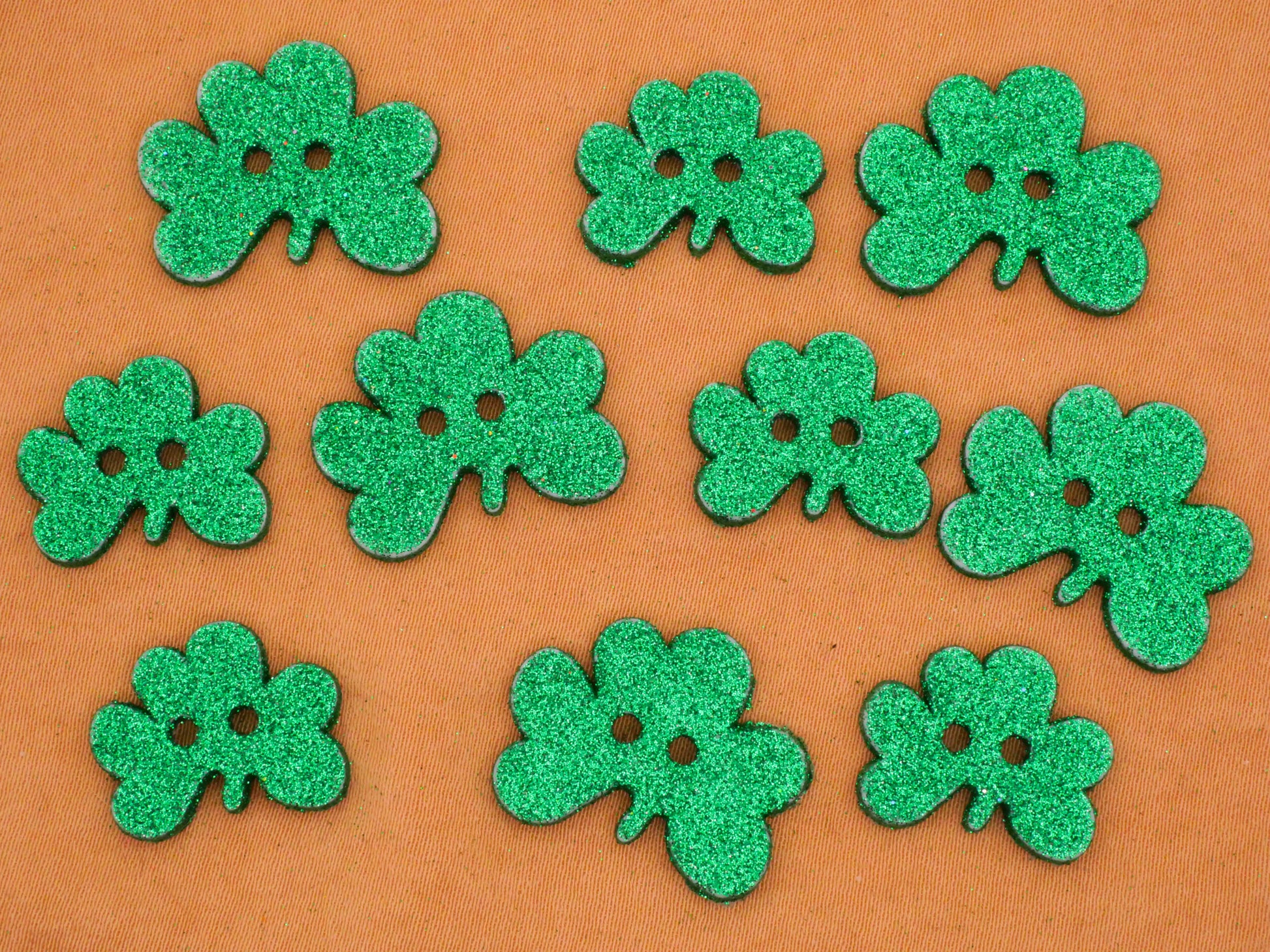 Shamrock Clover Green Glitter Plastic Set of Ten Buttons 14-21mm