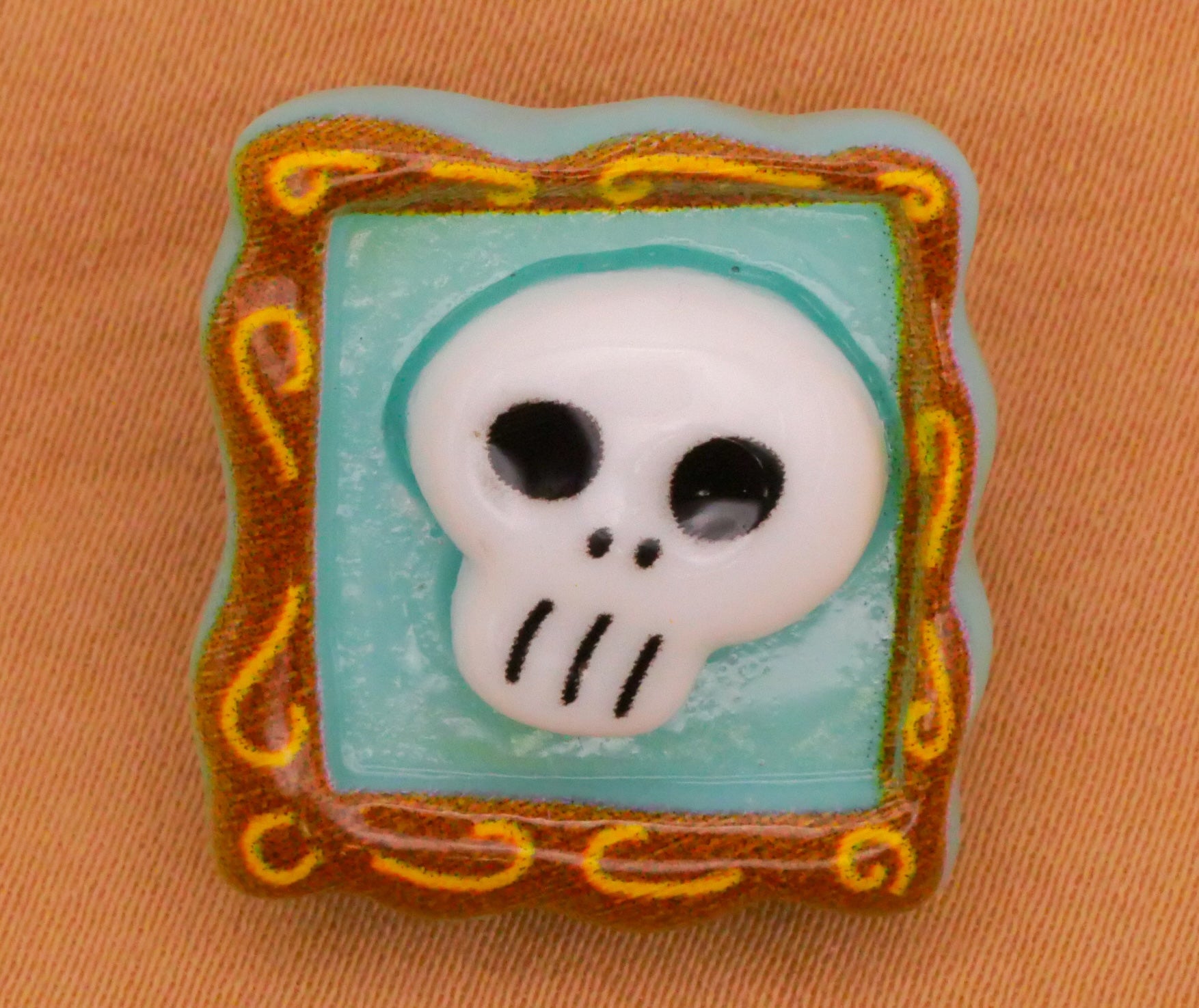 Amazing skull skeleton picture frame plastic button! Measures 20 x 21mm / .79" x .83".