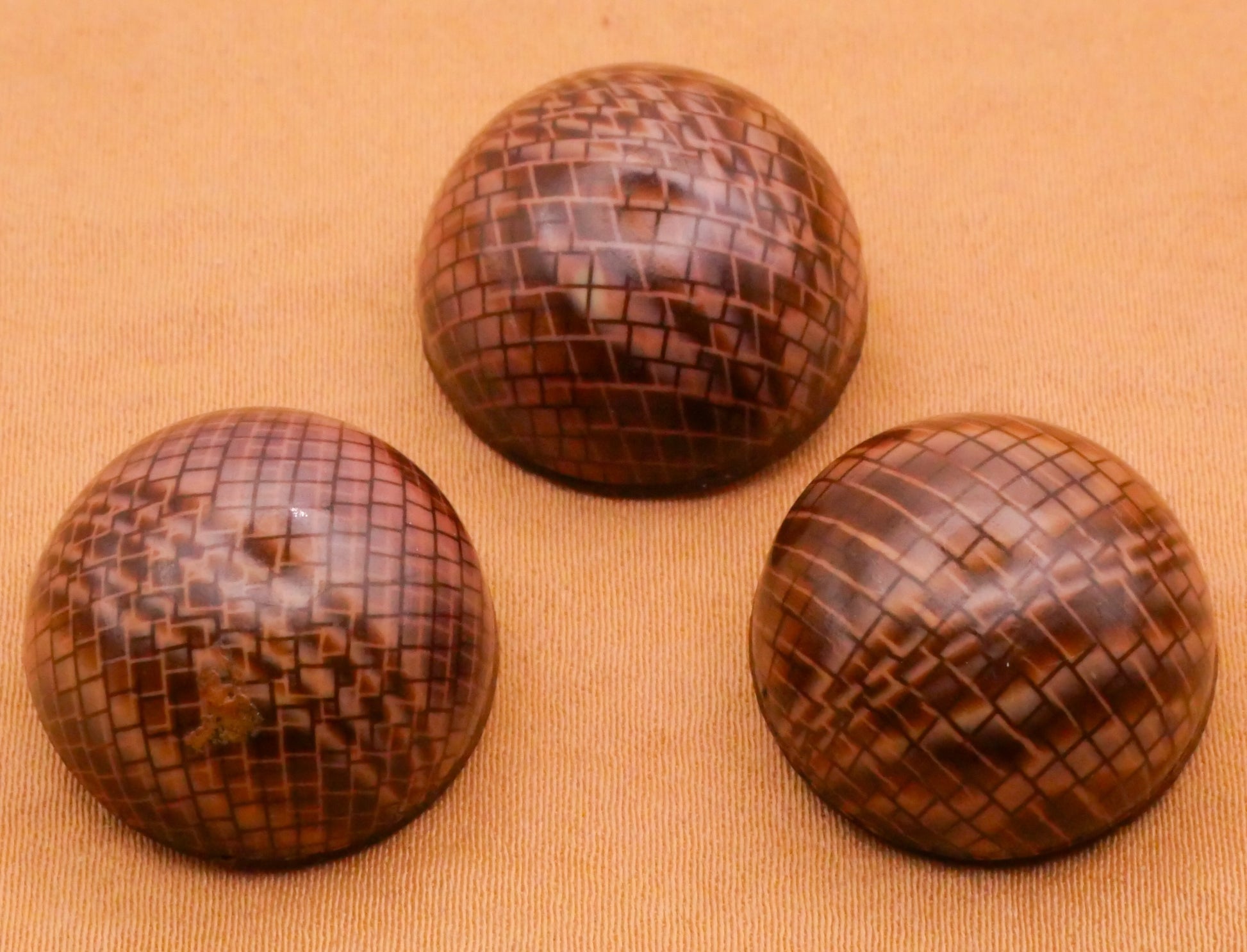 Unusual snake skin design celluloid bubble early plastic buttons, choose your favorite! Each measures 18mm / .71" in diameter. Choose left, center, or right.