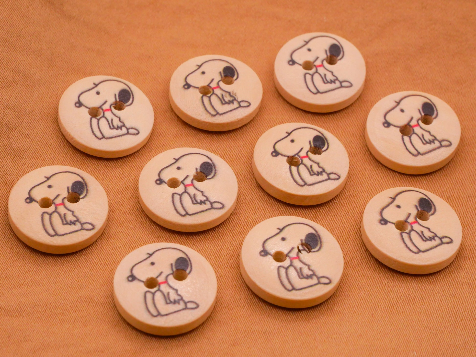 Snoopy Peanuts Dog Wood Set of Ten Buttons 15mm