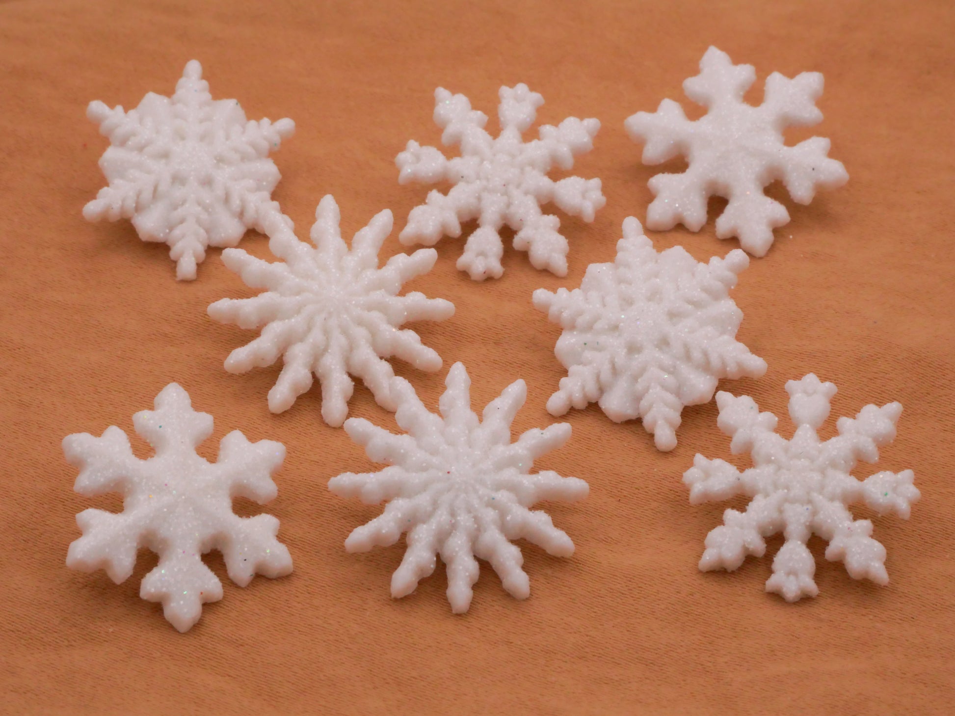 Shimmery glitter snowflake set of eight plastic buttons! These measure between 19-21mm / .75"-.83".