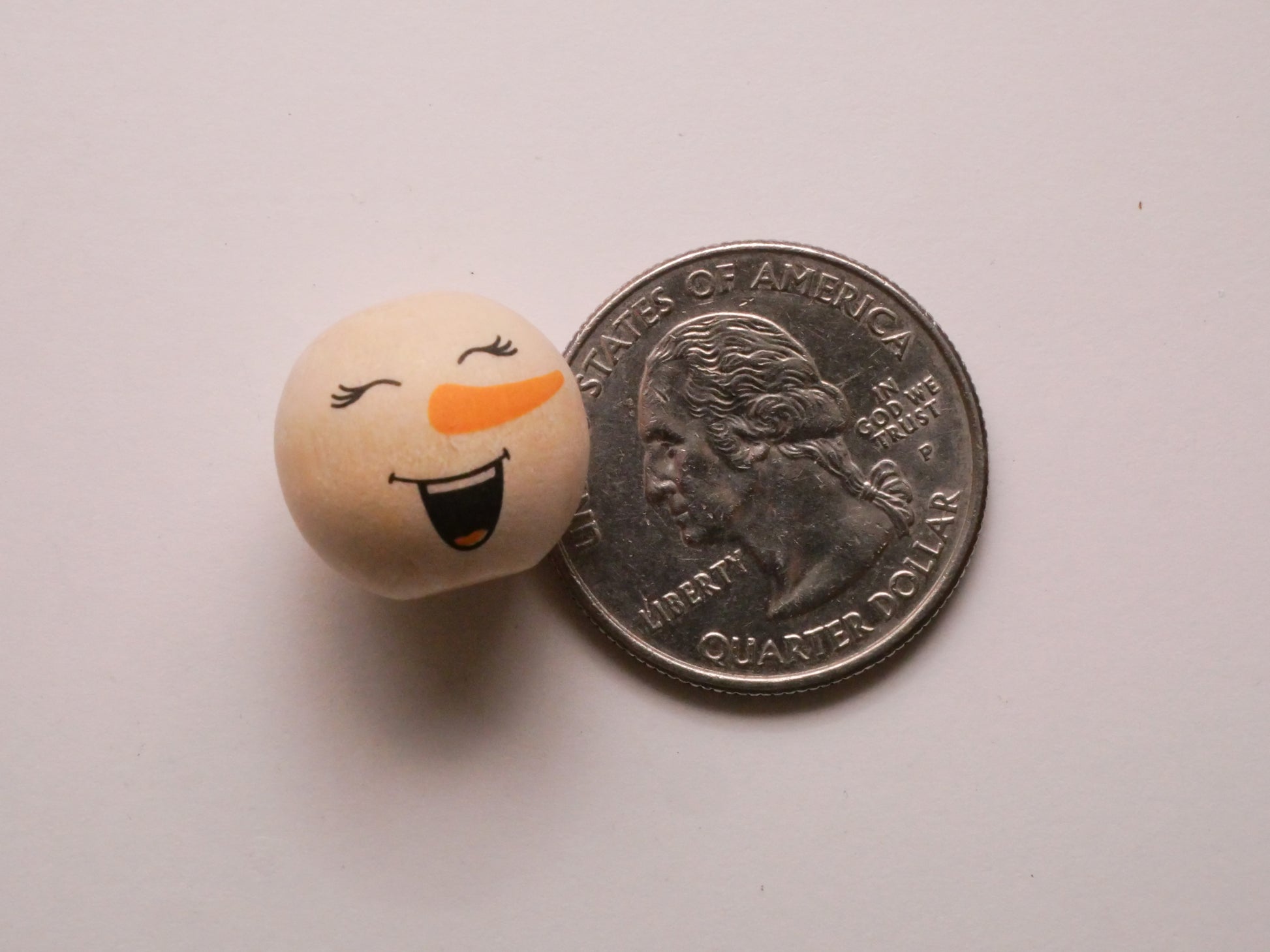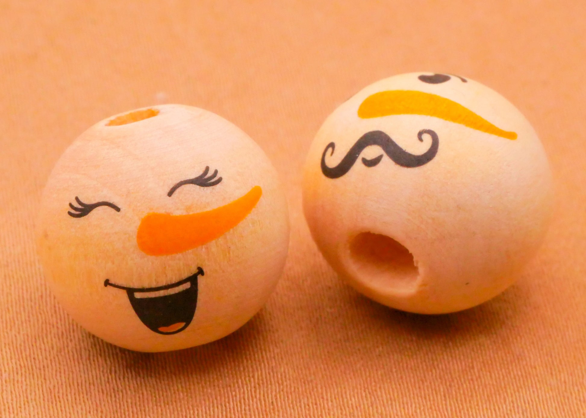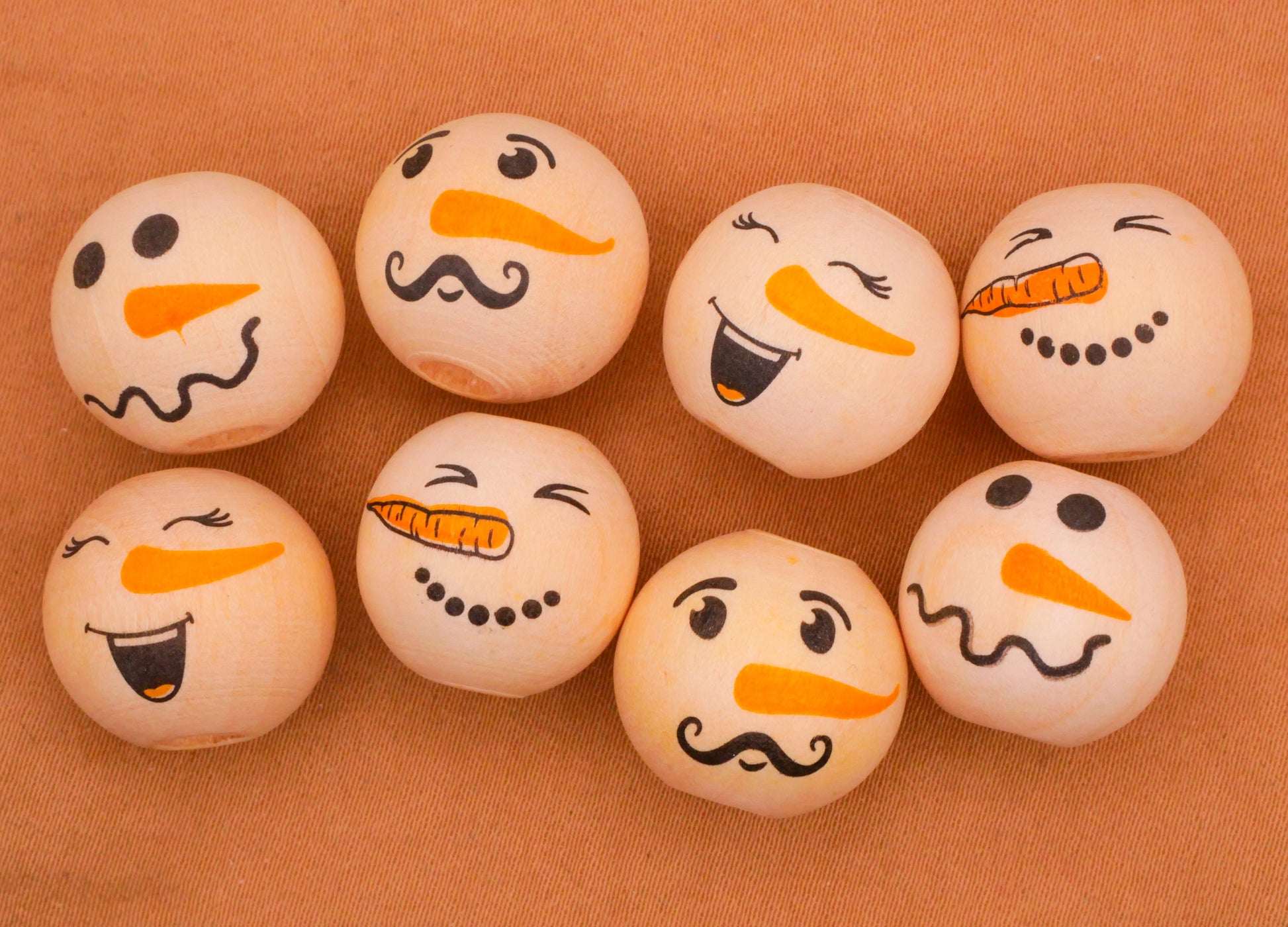 Darling snowman face wood beads! You'll receive eight snowman face beads, but I am including a photo of button ornaments that these would be so cute on. Each bead measures 16mm / .63" across.