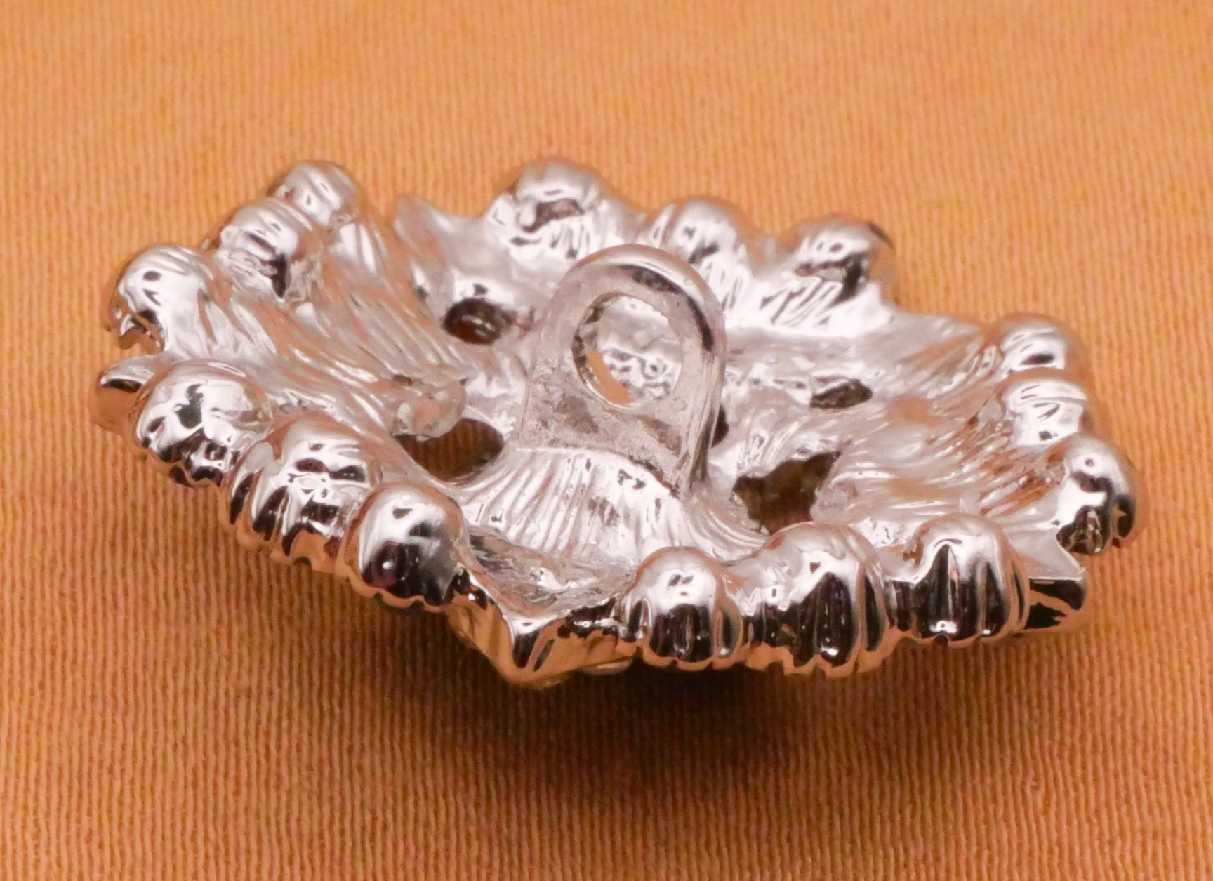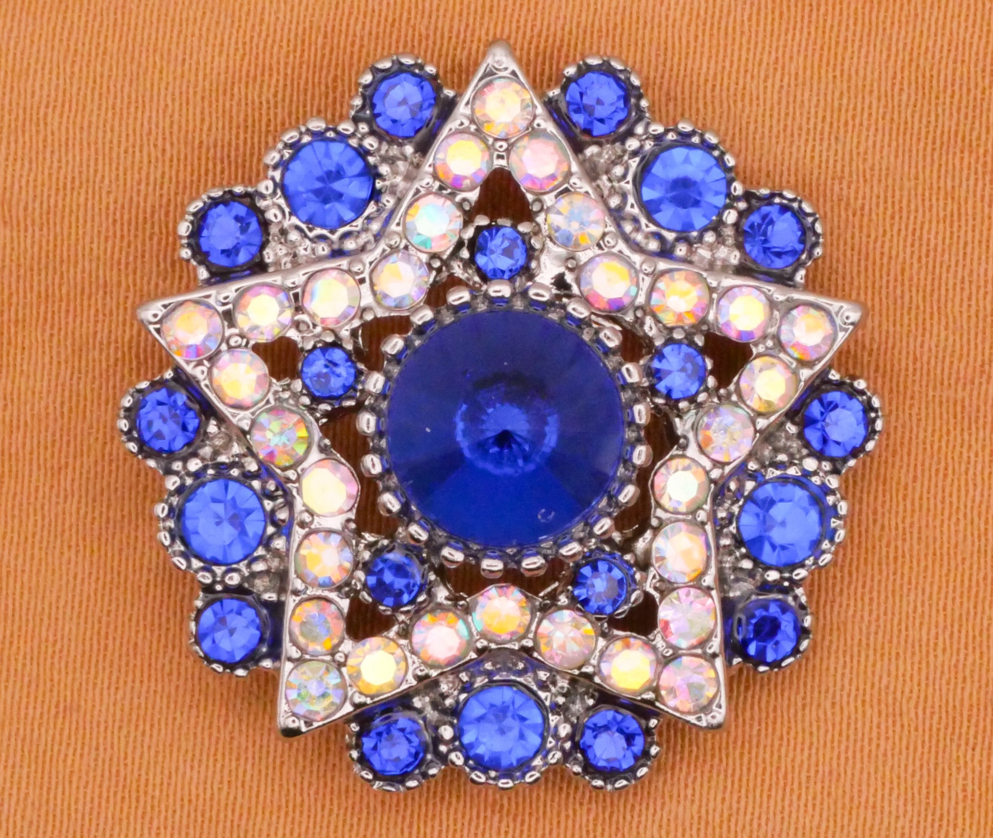 Stunning blue and iridescent rhinestone button with star design. Measures 27mm / 1.06" in diameter.
