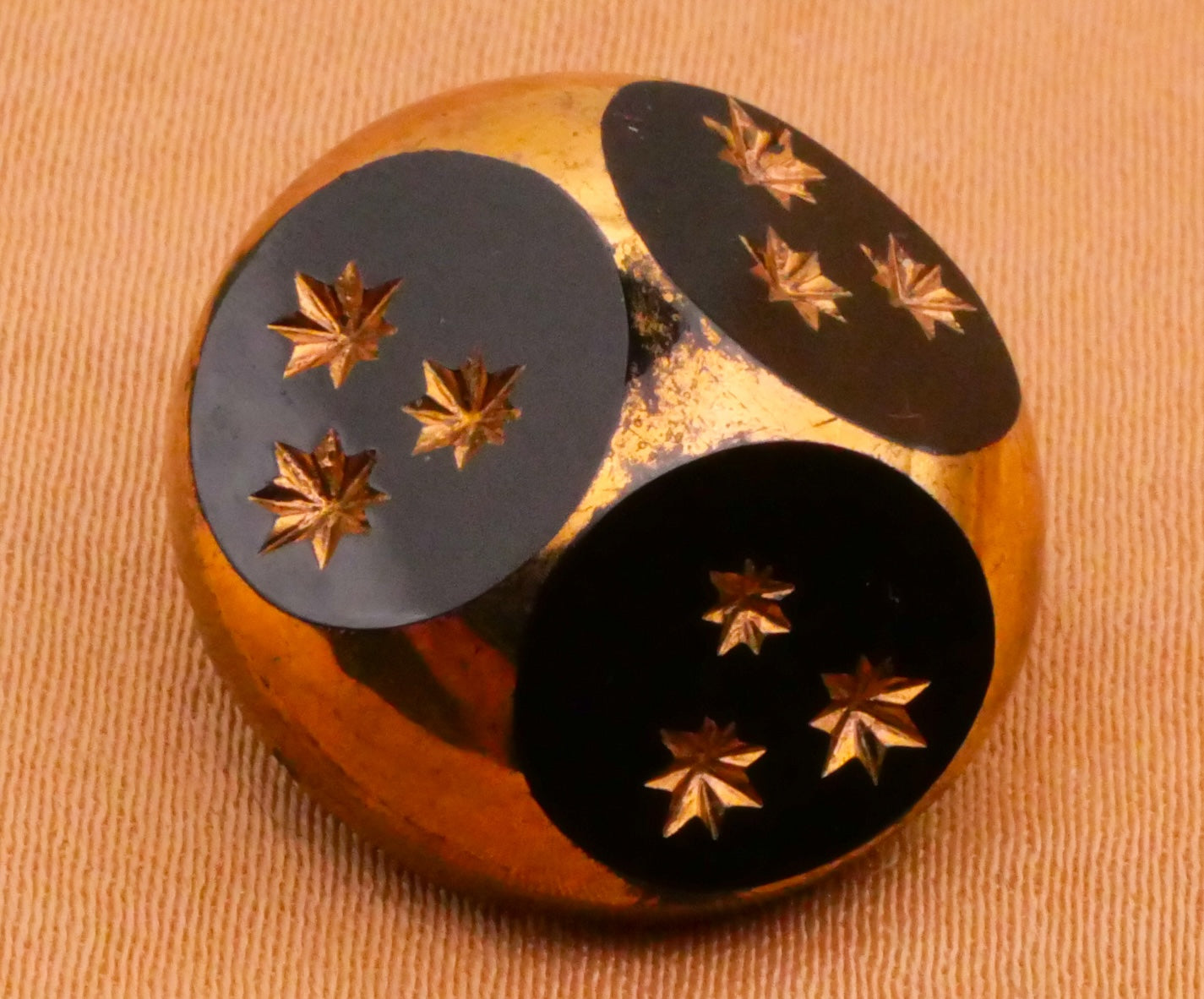Fabulous black and gold antique glass button with star design. Beautiful! Some of the gold is worn at top. Measures 18mm / .71" in diameter.
