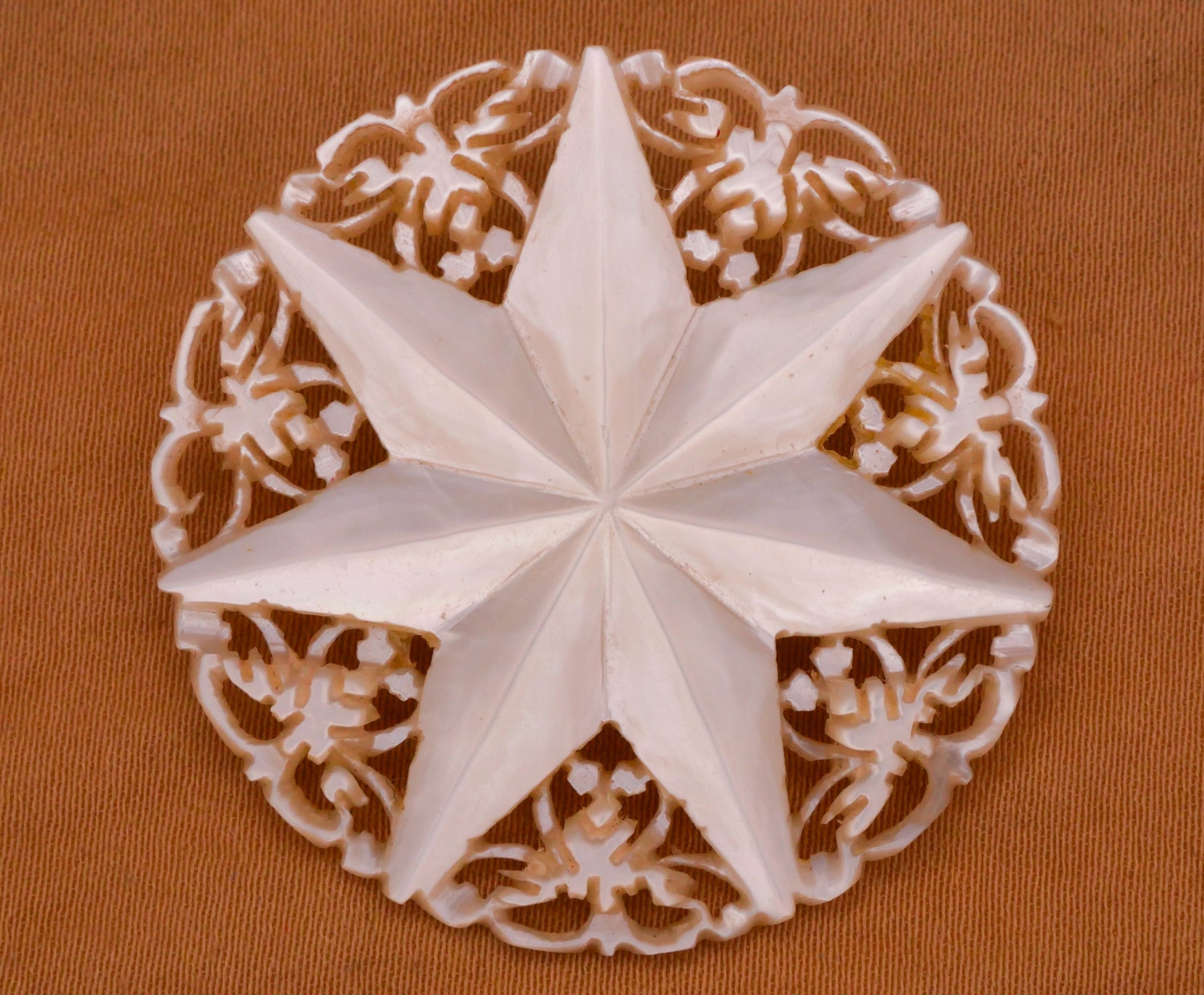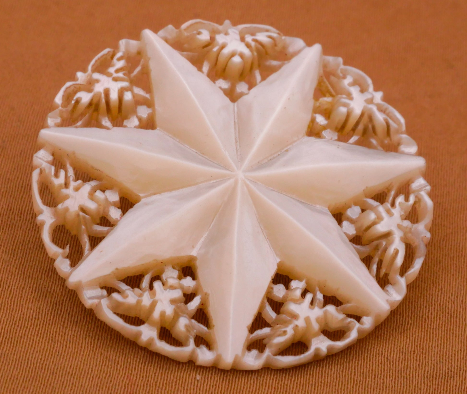 Stunning! Eight point star carved Bethlehem mother of pearl button. Large size measuring 36mm / 1.42" in diameter.