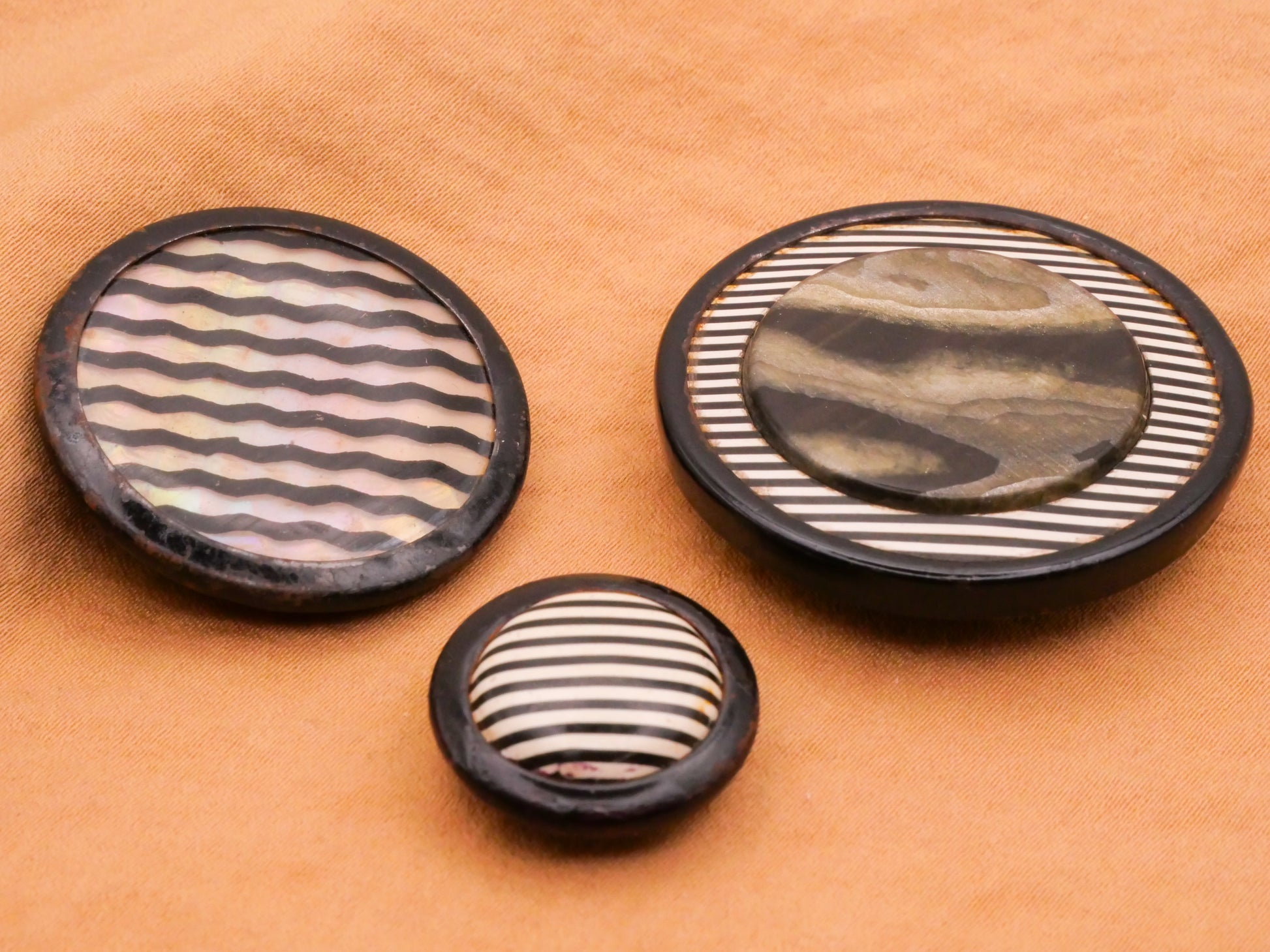 Stripe Black White Celluloid Early Plastic Vintage Button Various 9-37mm
