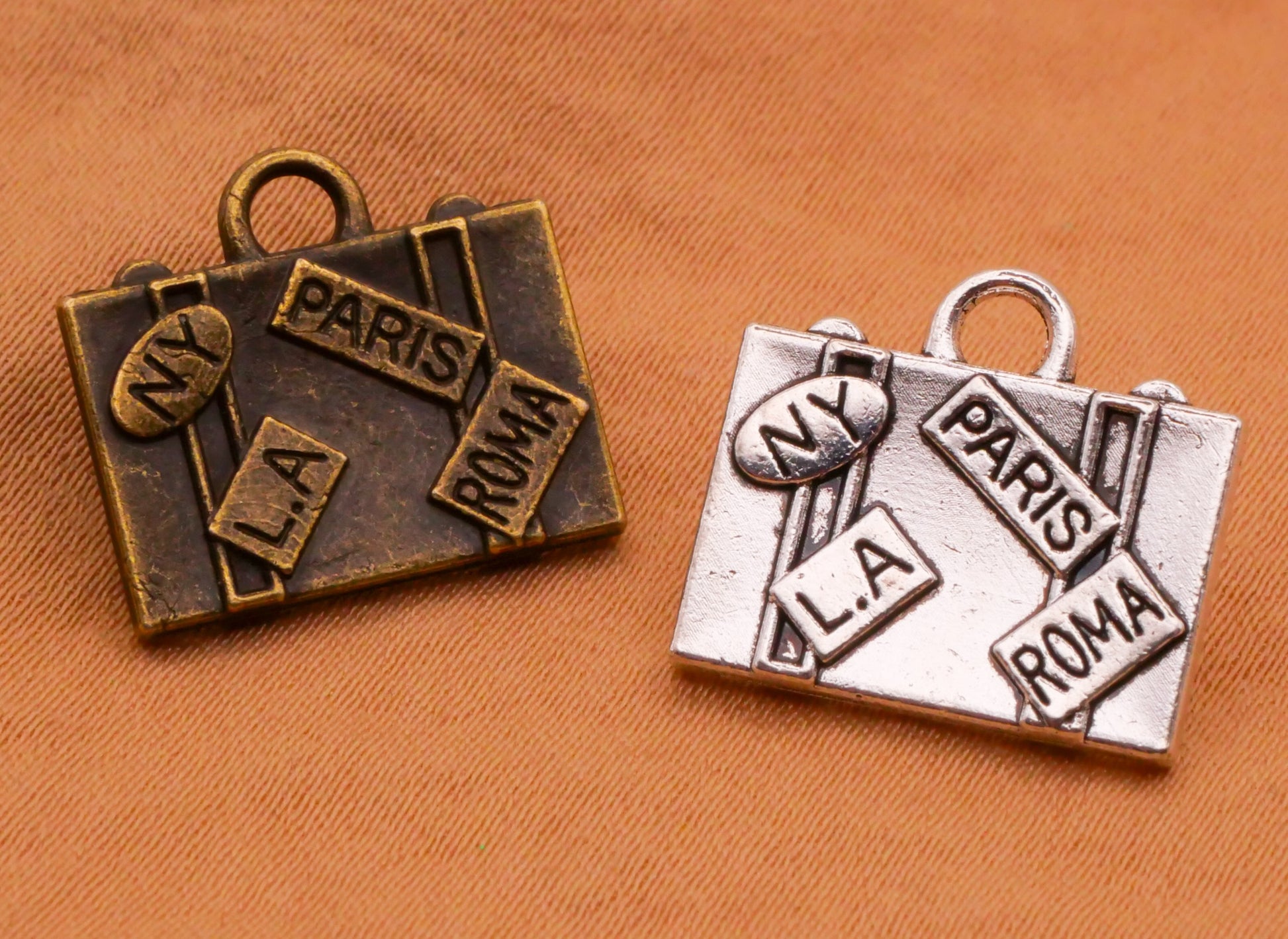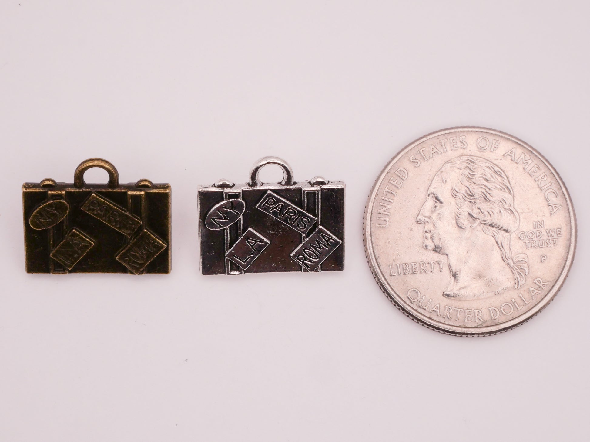 Suitcase Realistic Travel Destination Verbal Metal Button Various 15x16mm