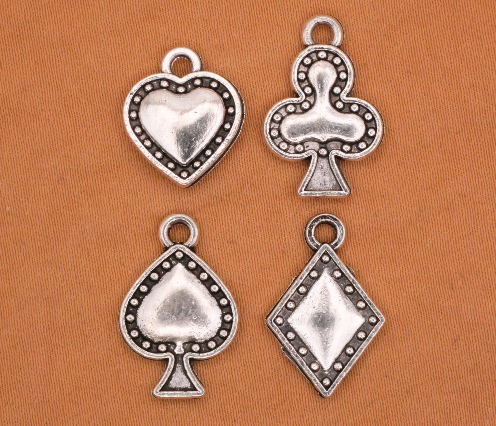 Suits Playing Cards Silver Metal Set of Four Charms Embellishments 12-15mm