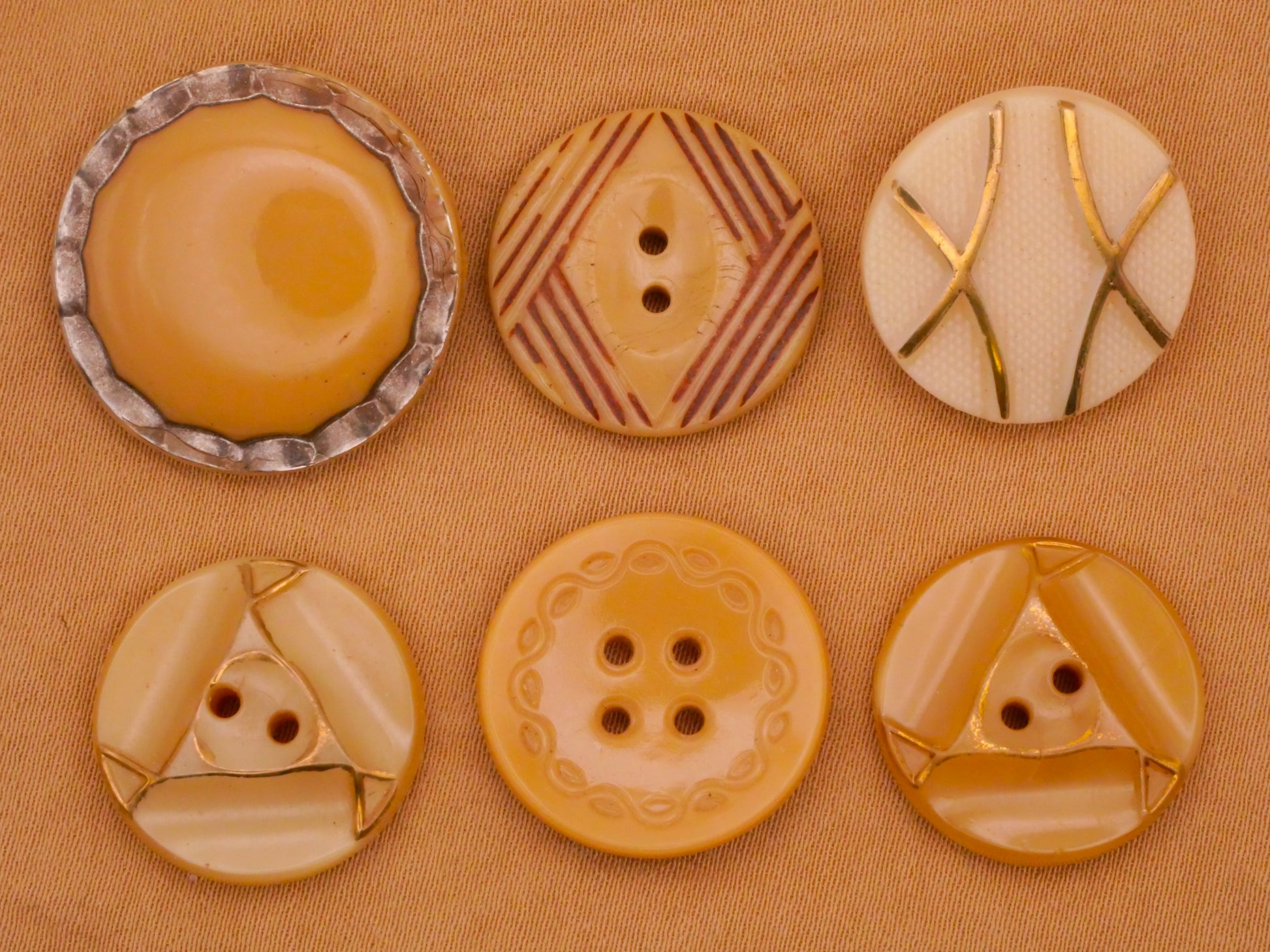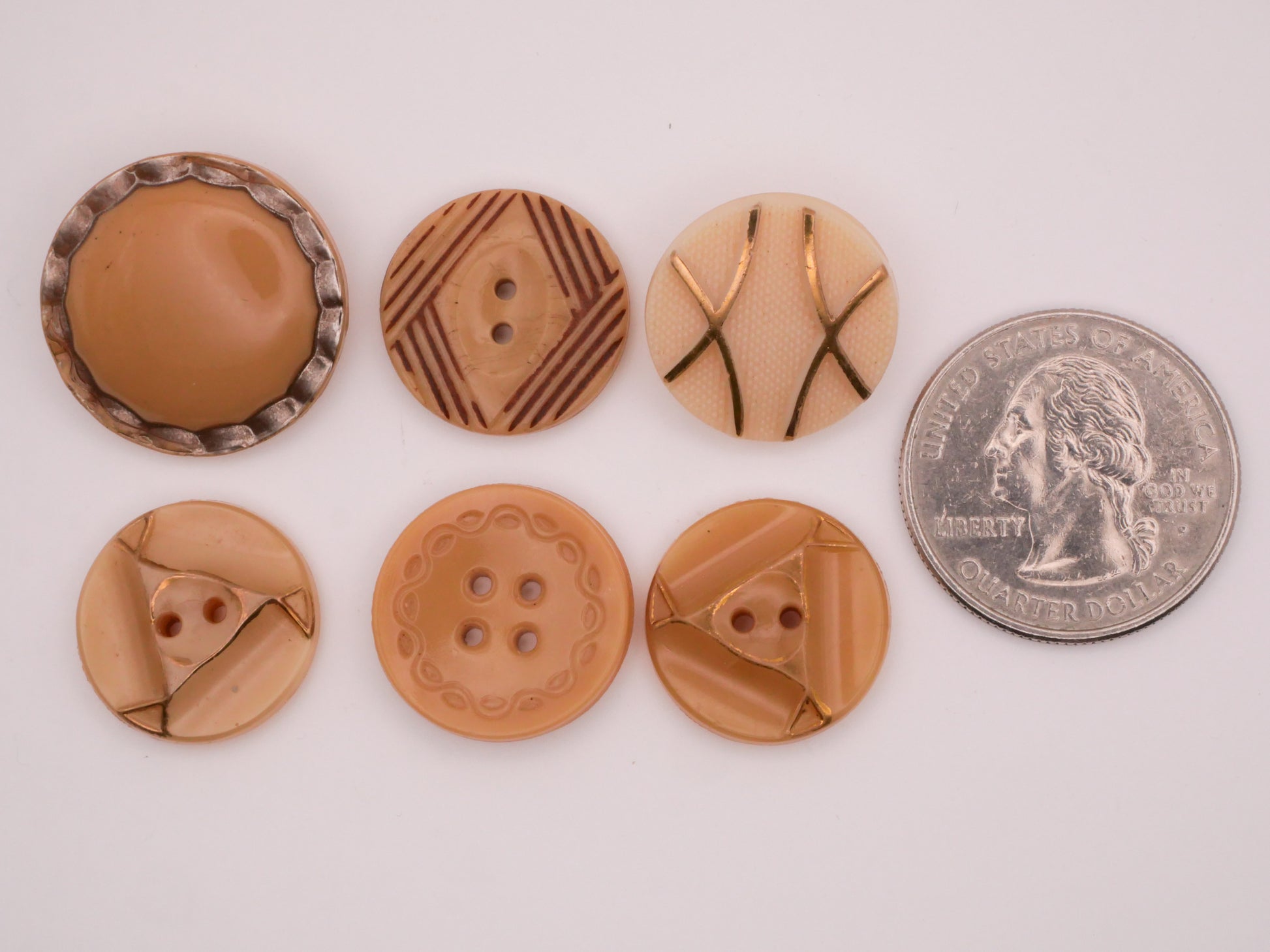 Taupe and ivory vintage glass buttons with various designs to choose between. These measure between 18-22mm / .71"-.87" in diameter. Choose top or bottom and left, center, or right.