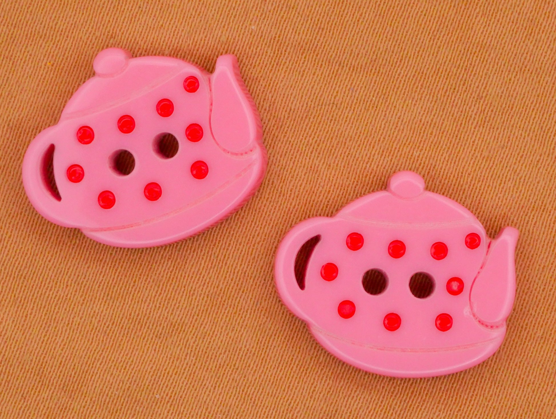 Teapot Polka Dot Plastic Pair of Buttons Various 15x18mm