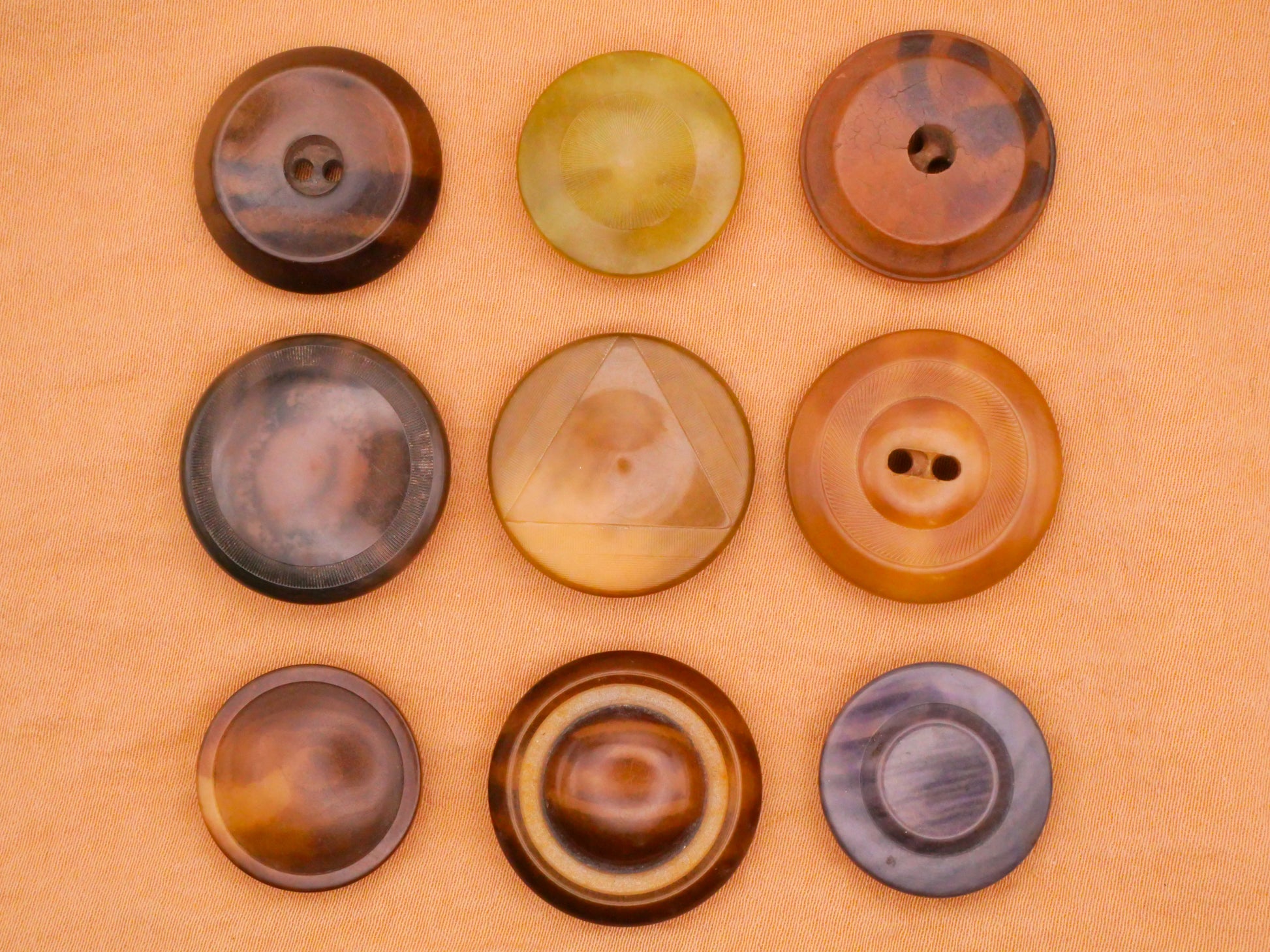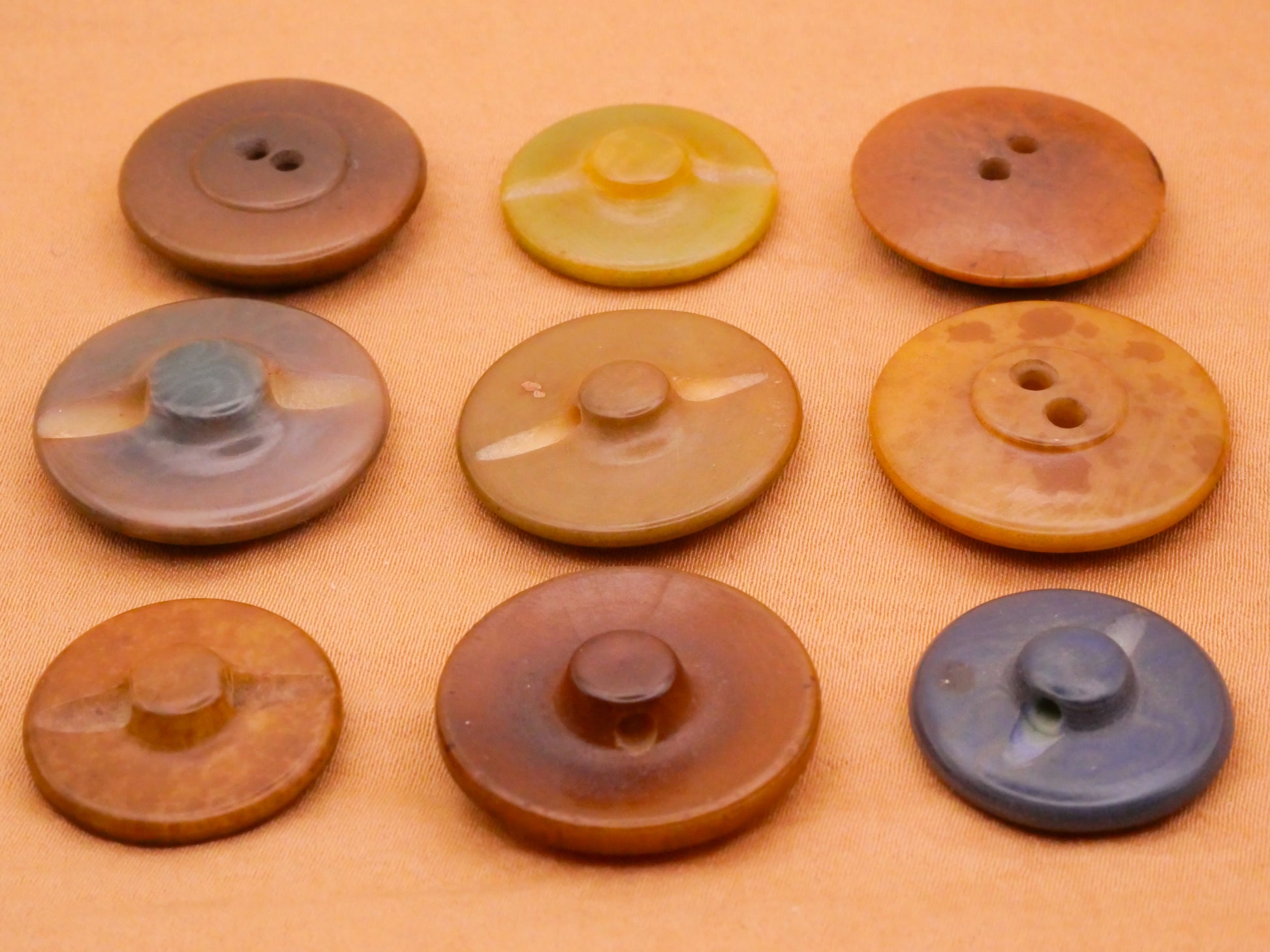 Really lovely marbled look vegetable ivory antique tagua nut buttons in various designs. These measure between 19-23mm / .75"-.91". Choose top, middle, or bottom and left, center, or right.