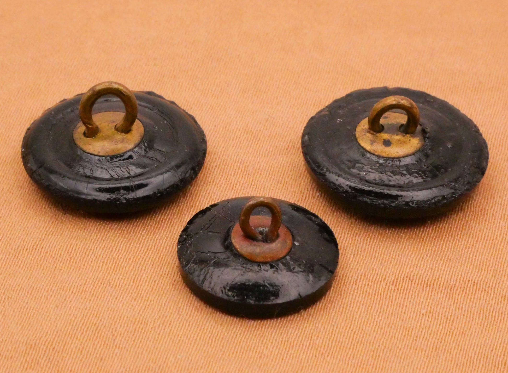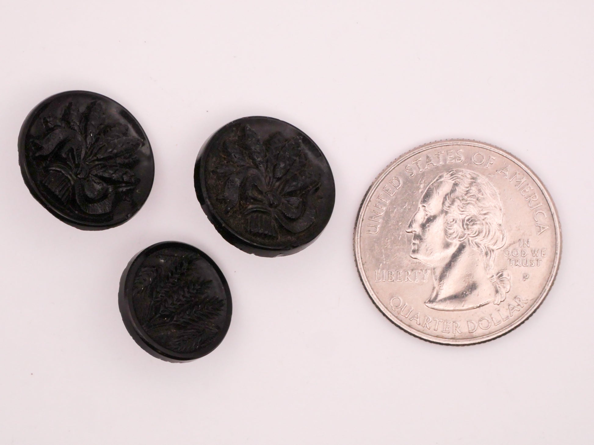 Lovely antique black glass buttons with wheat or grain designs. These measure between 14-17mm / .55"-.67". Choose left, center, or right.